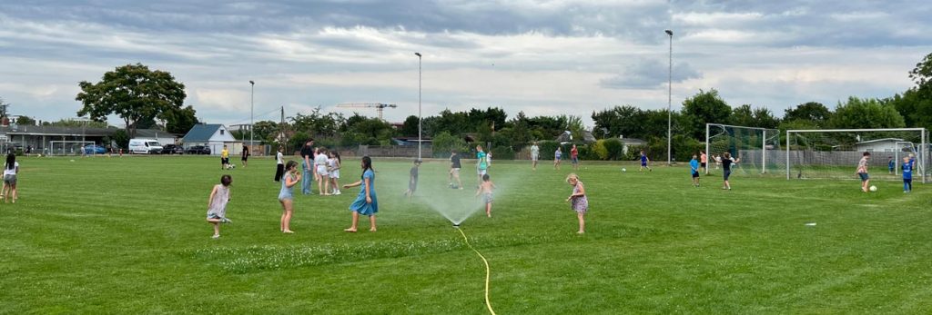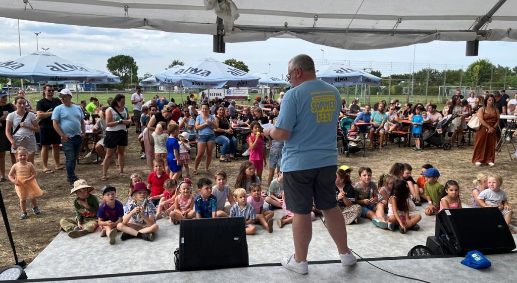 Währenddessen nutzten viele Kinder den Rasenplatz zum Spielen, Toben und Kicken. Besonders beliebt war die spontane Abkühlung im Rasensprenger, die bei den sommerlichen Temperaturen für leuchtende Kinderaugen und jede Menge Spaß sorgte.