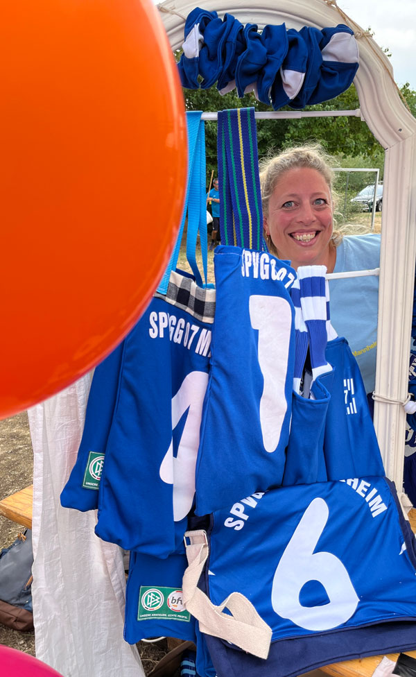 Ein besonderes Highlight war in diesem Jahr unser Upcycling-Stand: Zum ersten Mal wurden auf dem Sommerfest selbstgemachte Handtaschen und Scrunchies verkauft – gefertigt aus alten Vereins-Trikots. Eine tolle Aktion, die nicht nur kreativ, sondern auch nachhaltig war und bei den Besucherinnen und Besuchern großen Anklang fand.